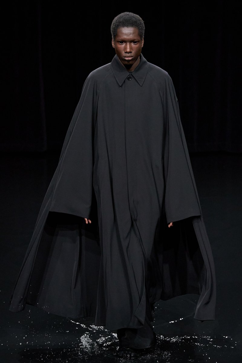 "Balenciaga Winter 20 recontextualizes the structures inherently associated with desire, inverting the values of certain dress codes. The austerity of clerical garb and court robes are interpreted for casual wear. Classical traditions, hardcore aesthetics, and fetishized details are combined and rearranged, mixing business with pleasure.