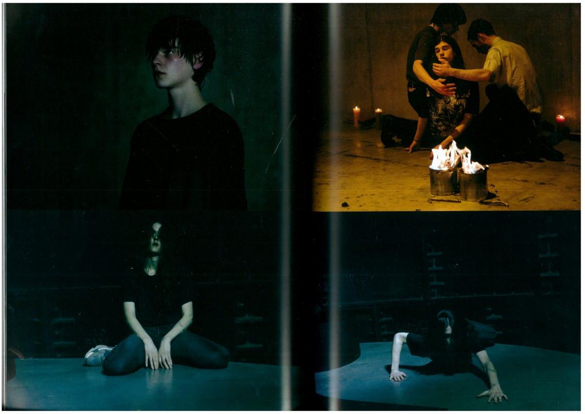 AI Yeah. Faust was the first time I structured a piece around songs. There is always a shift among the performers between who leads and who follows, and the images we create reflect who’s on top and who’s below. I think in Faust, it was about oppression: on one hand, the horizontal line was cutting the space in a half, like a horizon, but I wanted to take away that horizon when you entered the space. It’s this idea that there is an end inside, this moment of death, and then the vertical glass panels create a representation of that moment. I had this feeling when Eliza was lying underneath the floor and singing “Medusa’s Song.” There was this moment when she sang, “feast upon me.” I found it quite beautiful, in that it contained this idea of being there in this moment, being looked at and responding to that as a performer, while at the same time, completely giving in.