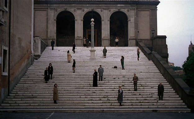 "Andrei meets and befriends a strange man named Domenico, who is famous in the village for trying to cross through the waters of a mineral pool with a lit candle. He claims that when finally achieving it, he will save the world. They both share a feeling of alienation from their surroundings. Andrei later learns that Domenico used to live in a lunatic asylum until the post-fascistic state closed them and now lives in the street. He also learns that Domenico had a family and was obsessed in keeping them inside his house in order to save them from the end of the world, until they were freed by the local police after seven years. Before leaving, Domenico gives Andrei his candle and asks him if he will cross the waters for him with the flame. (...)